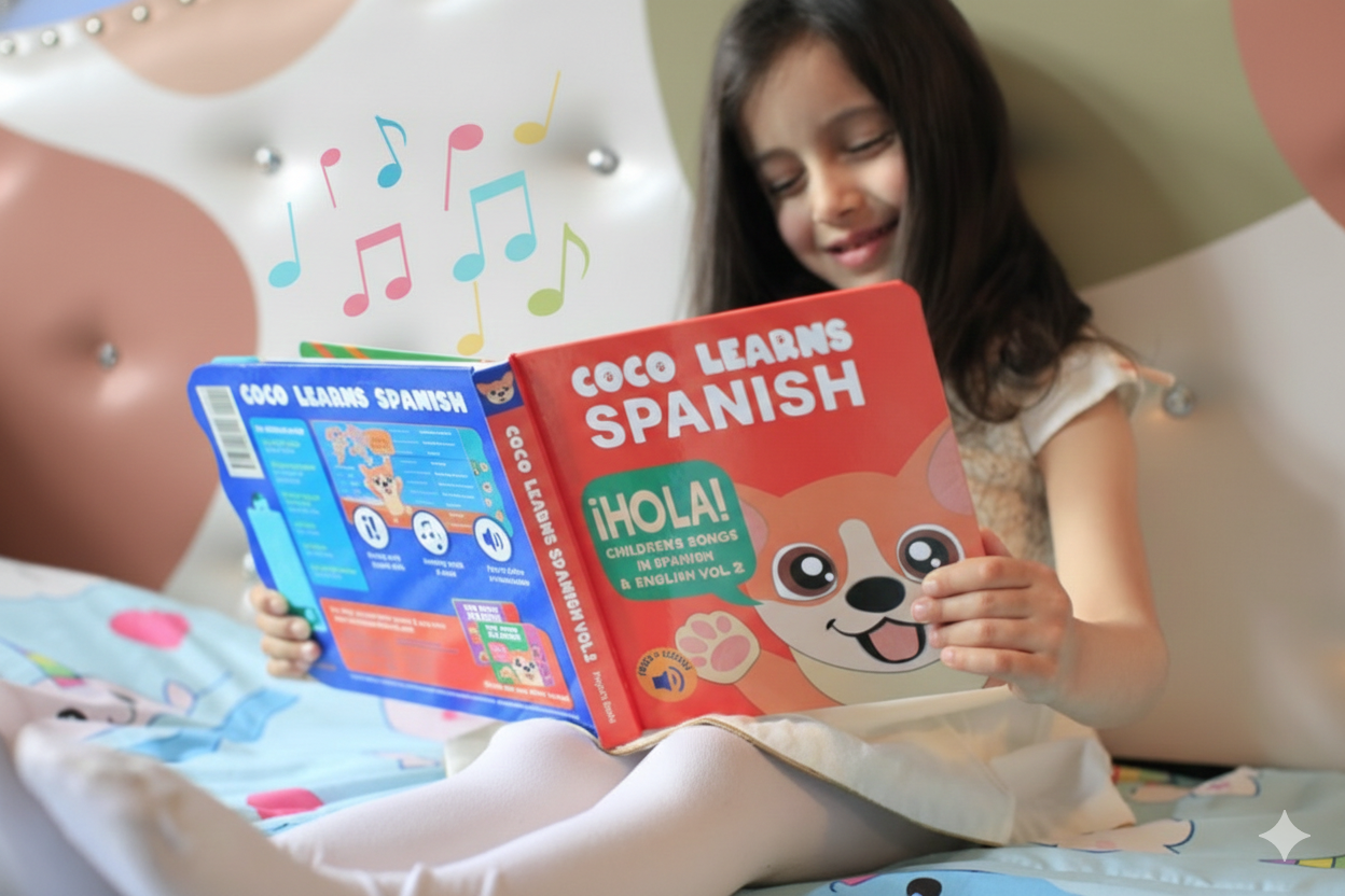 Parents often wonder: What’s the best way to teach a toddler a new language? The answer may be simpler than you think, through music. That’s why Coco Learns Spanish Volumes 1–3, a set of interactive Spanish toddler books ages 1–3, uses songs and melodies as the foundation for bilingual learning.